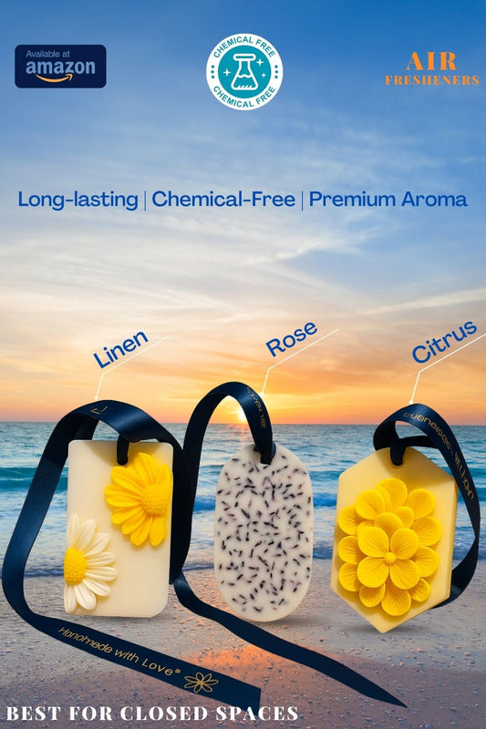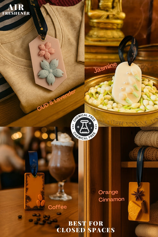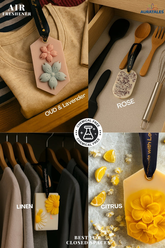 Air Freshener Mogra, Citrus, Linen & Rose Natural Scent for Wardrobes, Cupboards & ShoeRacks | Pack of 4