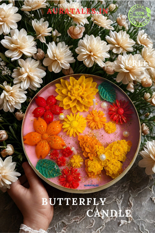 Golden Butterfly Urli Candle - Premium Oud Rose & Saffron | For Festival & Gifting